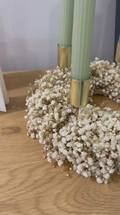 Wie frisch gefallener Schnee bringt dieser filigrane Adventskranz aus getrocknetem Schleierkraut winterliche Leichtigkeit in dein Zuhause. Ganz in Weiß gehalten, strahlt er eine ruhige, natürliche Eleganz aus – perfekt für minimalistische Winterdeko oder als sanfter Akzent in der Adventszeit.