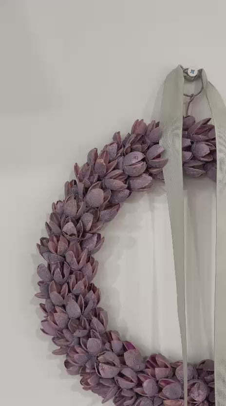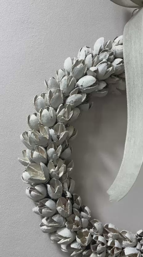 Dieser filigrane Kranz aus echten Bakuli-Schalen überzeugt durch seine feine, leichte Optik und seine natürliche Eleganz. Mit einem Durchmesser von 30 cm und der schmalen Ausführung wirkt er besonders zart und stilvoll – ideal für dezente, moderne Dekorationen.