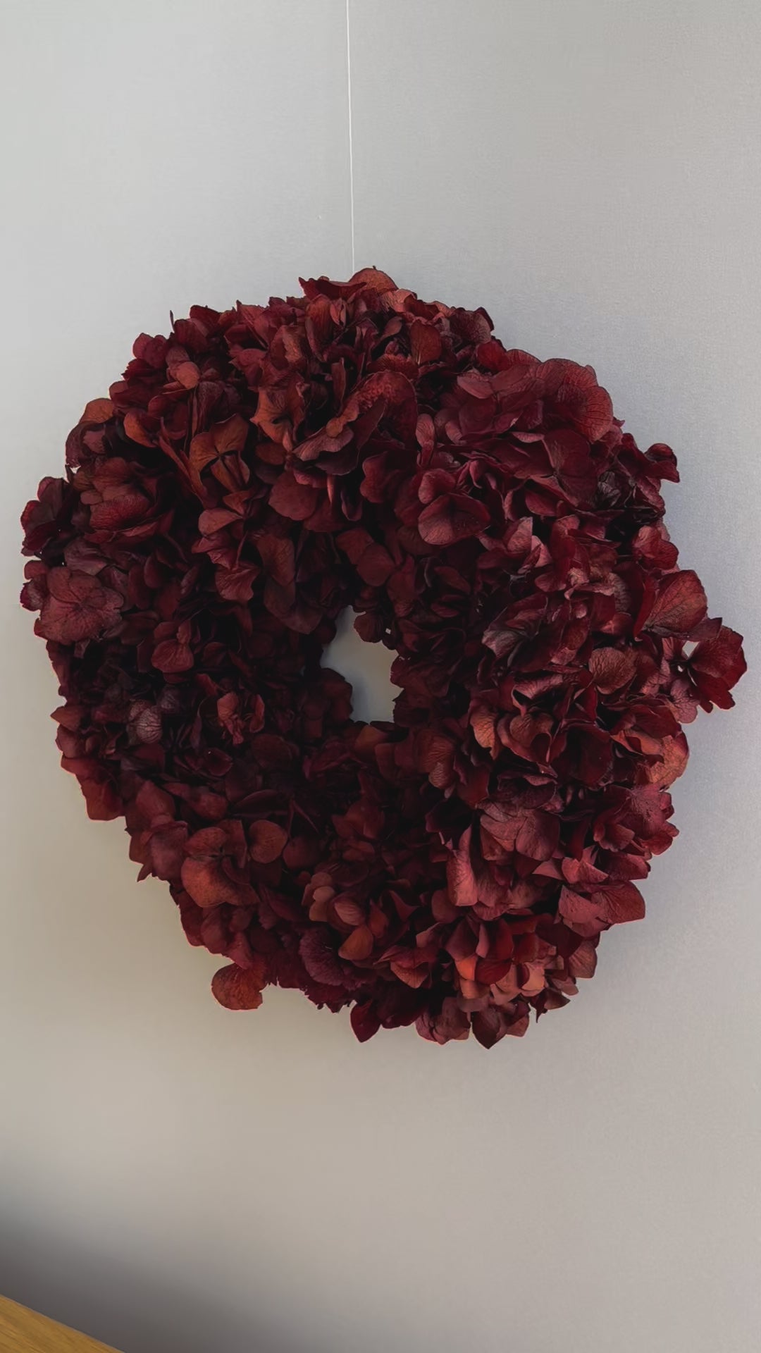 Hydrangea all over: Puristic dried flower wreath red wurde von mir für Dich per Hand gebunden. Ich wünsche dir viel Freude mit deinem neuen Lieblingsstück"