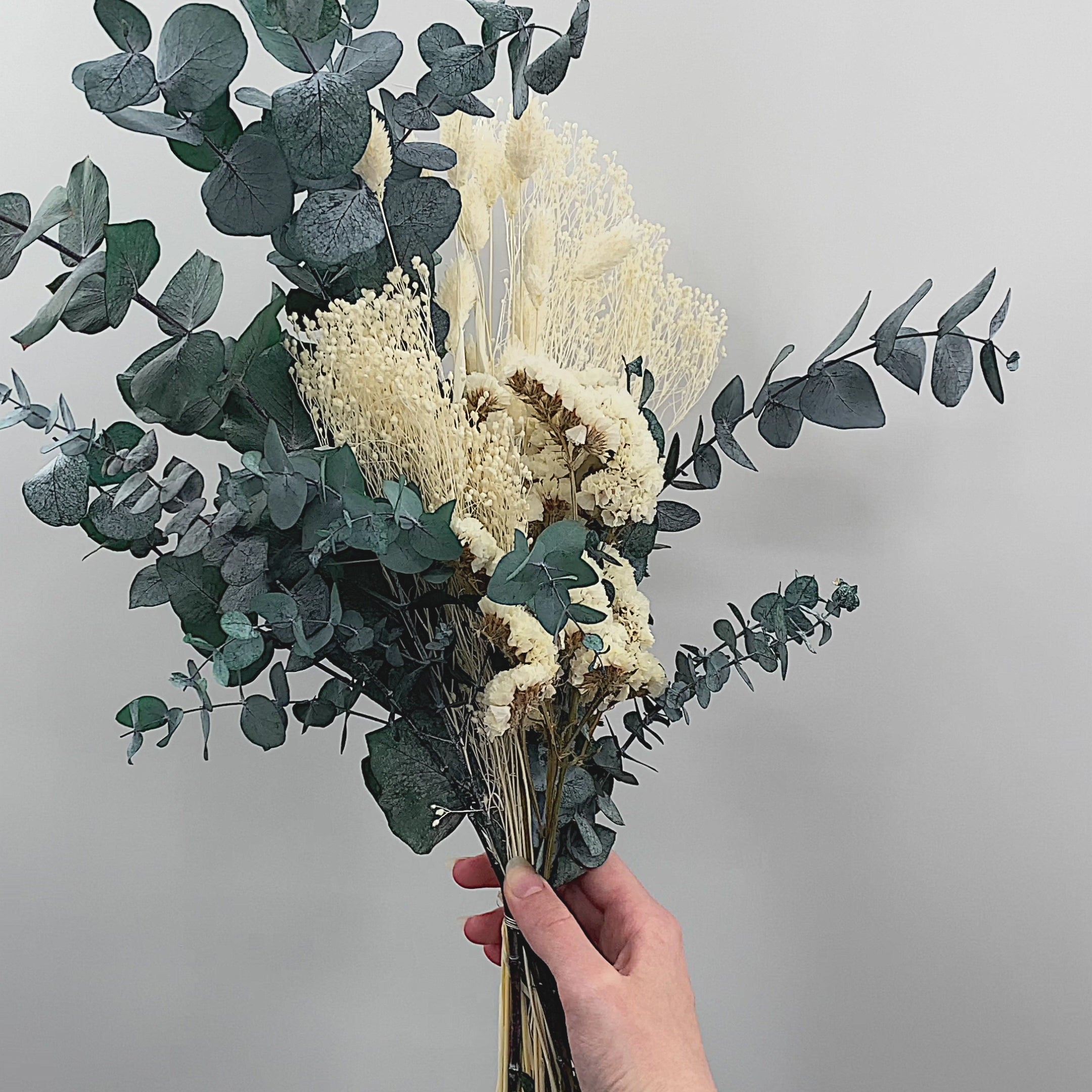 Nature poetry: Eucalyptus meets delicate elegance I Dried flower bouquet in green and beige