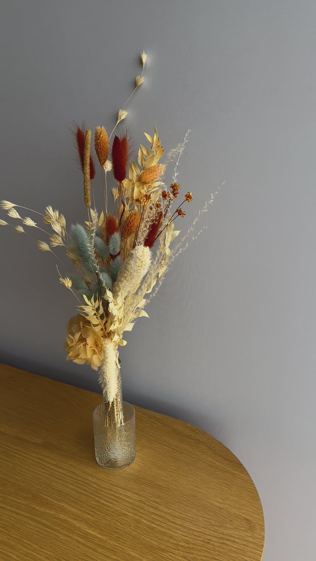 This stylish dried flower bouquet, with a height of 30 cm and a width of approx. 15 cm , combines the natural beauty of selected dried flowers and brings timeless elegance to your home. The combination of different textures and soft colors makes this bouquet a real eye-catcher.
