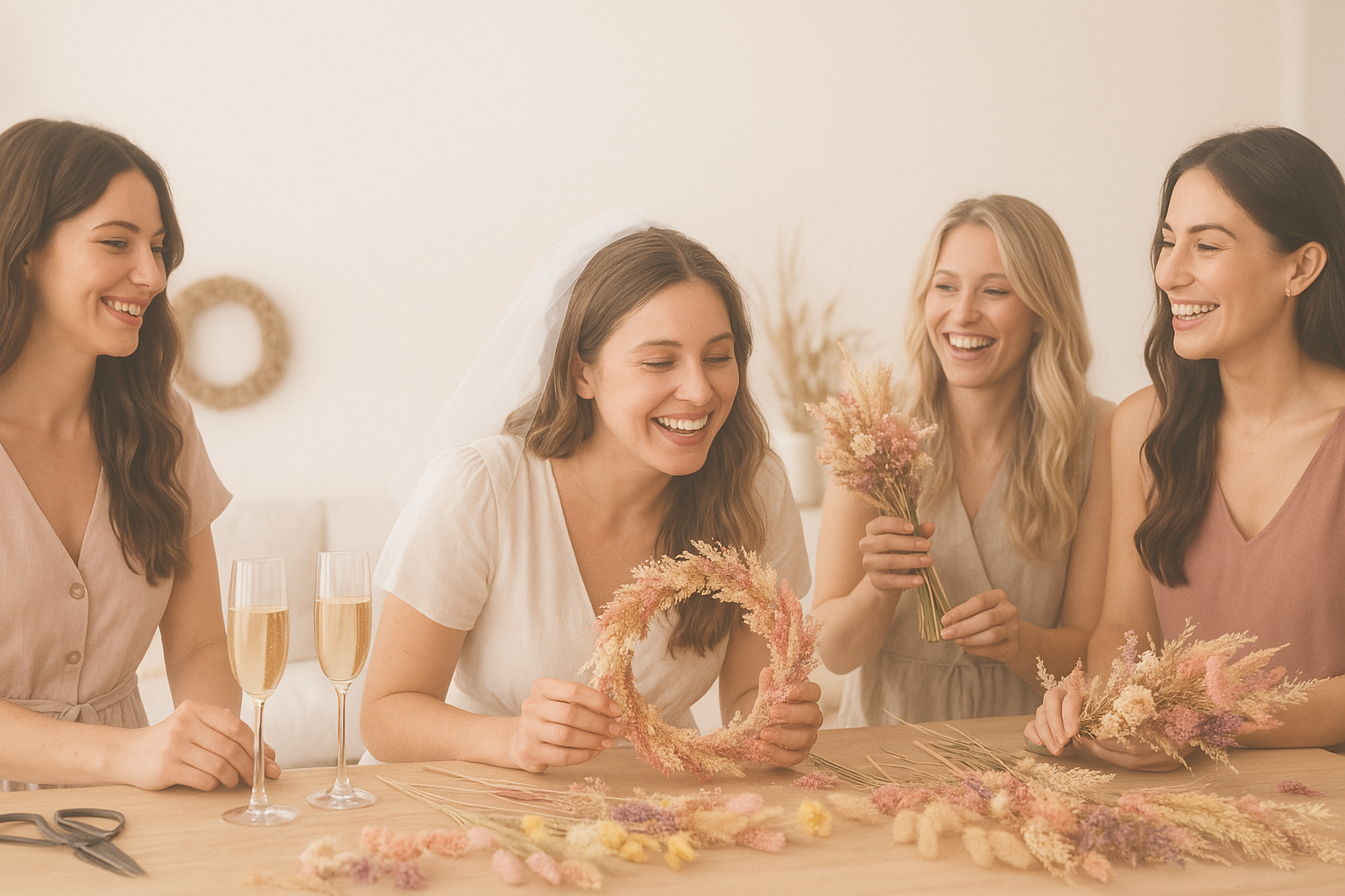 Wie wäre es mit einem unvergesslichen Nachmittag für dich und deine Mädels (oder Jungs) beim Junggesellenabschied? Gemeinsam gestaltet ihr kreative Blumenkränze, Flowercrowns oder Flowerbags – ein einzigartiges Andenken, das euch noch lange an diesen besonderen Tag erinnern wird. In entspannter Atmosphäre stellen wir alles zur Verfügung, was ihr braucht, und unterstützen euch dabei, eure eigenen, individuellen Kunstwerke zu schaffen. Mit verschiedenen Materialien zum Ausprobieren könnt ihr euch kreativ austoben und dabei eine Menge Spaß haben!