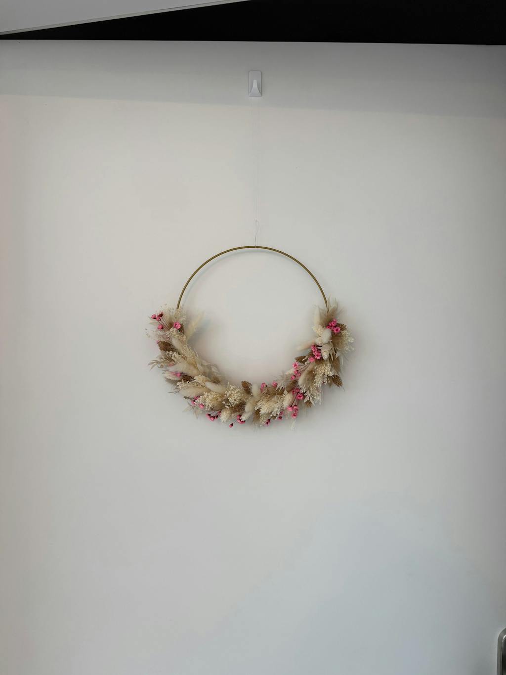 Blütenzart: Trockenblumenkranz in beige mit goldenem Ring