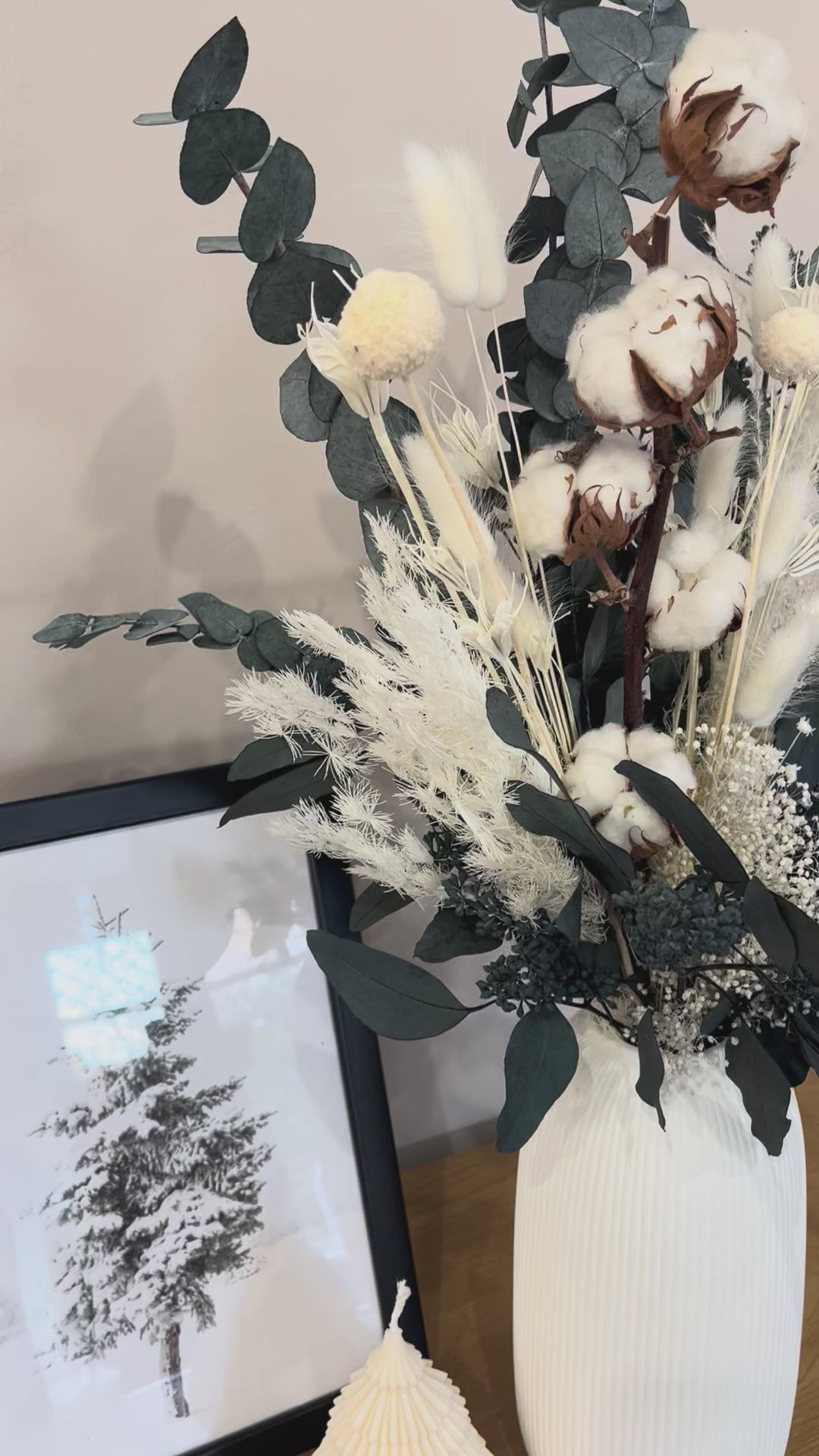 Die sorgfältig ausgewählten Trockenblumen sind langlebig, pflegeleicht und behalten ihre winterlich-edle Ausstrahlung dauerhaft – ganz ohne Wasser. Ob als stimmungsvolle Winterdekoration im Wohnbereich, als besonderer Akzent in der Adventszeit oder als liebevolles Geschenk: Dieser Strauß verleiht jedem Raum eine natürliche, ruhige und zugleich festliche Atmosphäre.