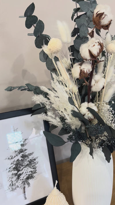 Winter Breeze: Trockenblumenstrauß mit Eukalyptus und Baumwolle